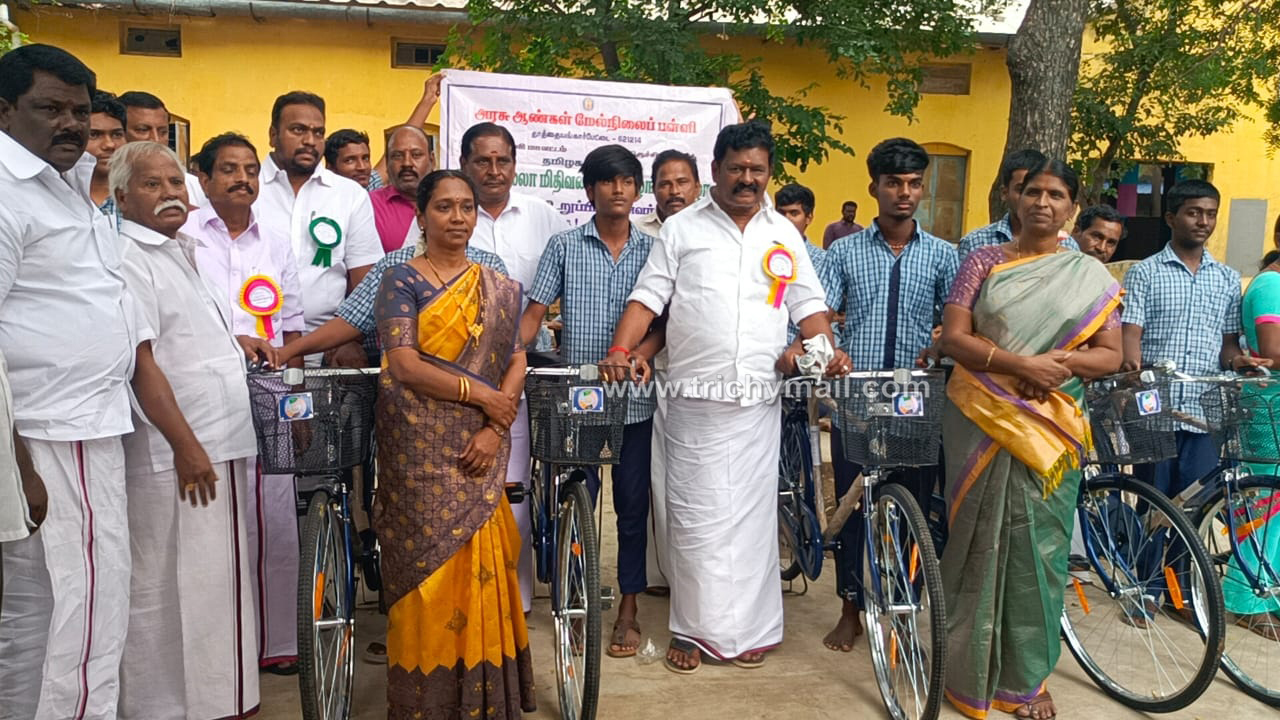 விழாவிற்கு முசிறி தொகுதி எம்எல்ஏ காடுவெட்டி தியாகராஜன் தலைமை வகித்து மாணவ மாணவிகளுக்கு மிதிவண்டிகளை வழங்கி வாழ்த்தி பேசினார்.