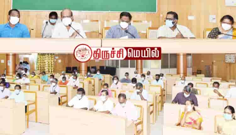 திருச்சி மாவட்டத்தில் கொரோனோ நோயை தடுக்கும் பொருட்டு 18 வயதுக்கு மேற்பட்டோர் அனைவருக்கும் ஊரக மற்றும் நகர்ப்புற பகுதிகளில் சிறப்பு முகாம்கள் மூலம் கொரோனோ தடுப்பூசி செலுத்தப்பட்டு வருகிறது. இந்நிலையில் தமிழகமெங்கும் 12.09.2021 அன்று மாபெரும் கொரோனோ தடுப்பூசி முகாம்கள் நடத்திட திட்டமிடப்பட்டுள்ளது. இதனையொட்டி திருச்சி மாவட்டத்தில் 12.09.2021 அன்று மாபெரும் கொரோனோ தடுப்பூசி முகாம்கள் நடத்துவது தொடர்பாக திட்டமிடுதல் மற்றும் தொடர்புடைய பல்வேறு துறைகள் இடையிலான ஒருங்கிணைப்புக்குழுக் கூட்டம் மாவட்ட ஆட்சியரகத்தில் மாவட்ட ஆட்சித்தலைவர் சிவராசு தலைமையில் நடைபெற்றது.