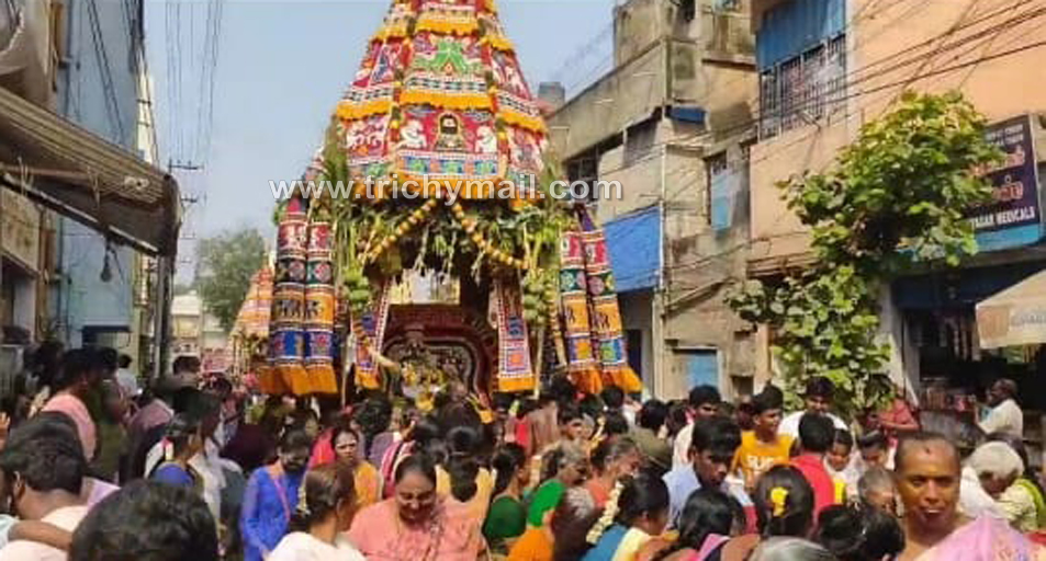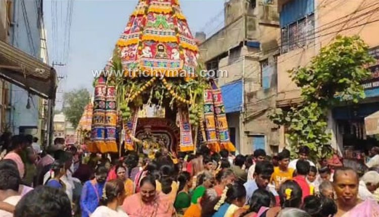 திருச்சி நாகநாதசுவாமி கோவில் மாசித் தேரோட்டம் – திரளான பக்தர்கள் தேரை வடம்பிடித்து இழுத்தனர்.