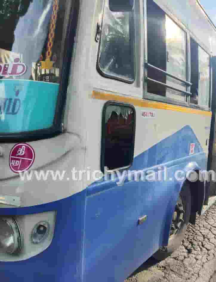 சேலத்தில் இருந்து திருச்சி நோக்கி அரசு பேருந்து ஒன்று வந்து கொண்டிருந்தது.அப்போது வாத்தலை காவல்நிலைய எல்லைக்குட்பட்ட சிறுகாம்பூர் பெட்ரோல் பங்க் அருகே வந்தபோது இரண்டு பைக்கில் வந்த நான்கு நபர்கள் பேருந்தை மறித்து ஓட்டுநர் நடத்துனரை தாக்கிவிட்டு பக கவாட்டில் இருந்த அவசரவழி கண்ணாடியை உடைத்தனர். இதில் ஓட்டுநருக்கு காயம் ஏற்பட்டது. இதனால் அப்பகுதியில் சிறிது நேரம் போக்குவரத்து பாதிக்கப்பட்டது. இதுகுறித்து தகவலறிந்த வாத்தலை போலீசார் சம்பவ இடத்திற்கு வந்து விசாரணை செய்தனர். அப்போது கண்ணாடியை உடைத்ததில் ஸ்ரீரங்கம் கீழவாசல் டிரைனேஜ் தெருவைச் சேர்ந்து மணி மகன் 28 வயதான பிரசாத் கையில் காயம் ஏற்பட்டு சிறுகாம்பூர் அரசு மருத்துவமனையில் சிகிச்சை பெற்றபோது போலீசார் அவரை பிடித்து விசாரணை செய்தனர். இதில் திருச்சி சேலம் சாலையில் வந்து கொண்டிருந்தபோது எங்களது பைக்கை அணைத்துவிட்டு சென்றதாக கூறியுள்ளனர்.பின்னர் அவர்கள் மீது வழக்கு பதிவு செய்த வாத்தலை போலீசார் பிரசாத்தை கைது செய்து சிறையில் அடைத்தனர். மற்ற மூன்று பேரை போலீசார் தேடி வருகின்றனர்.