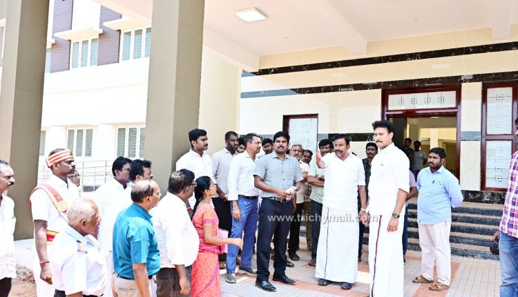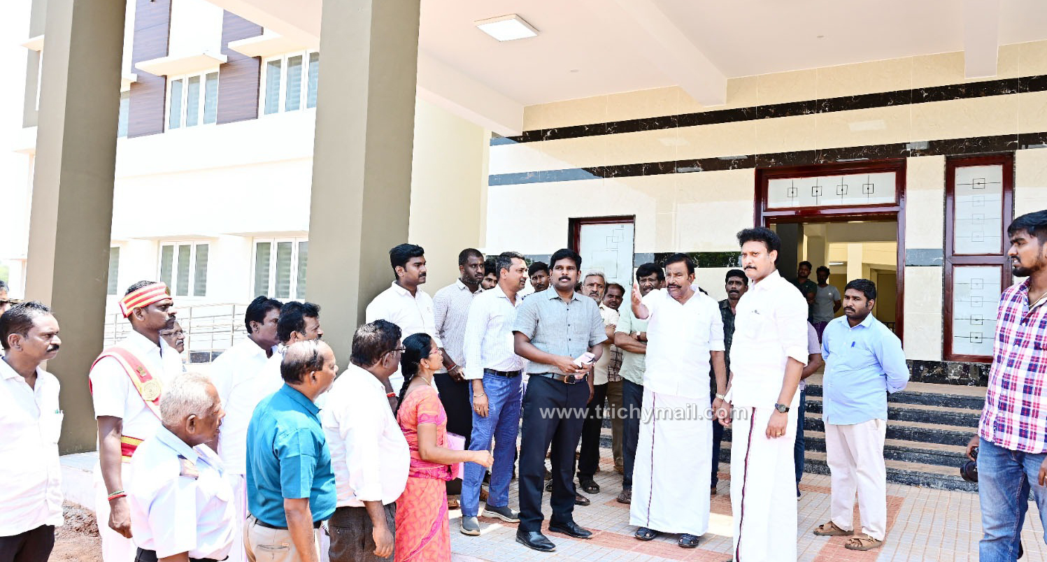 திருச்சி, மே 5 திருச்சி, துவாக்குடி அரசு பல்தொழில் நுட்ப கல்லூரி வளாகத்தில் புதிதாக கட்டப்பட்டுள்ள அரசு மாதிரிப்பள்ளி கட்டிடம் மற்றும் மாணவ, மாணவியர்களுக்கான வீடுதிக் கட்டடங்களை வரும் 8 ஆம் தி தமிழ்நாடு முதலமைச்சர் மு.க.ஸ்டலின் திறந்து வைக்கவுள்ளதை முன்னிட்டு நடைபெற்று வரும் முன்னேற்பாடு பணிகளை அமைச்சர் கே.என்.நேரு, அன்பில் மகேஸ் பொய்யாமொழி ஆகியோர் நேரில் பார்வையிட்டு ஆய்வு மேற்கொண்டார்கள். உடன் மாவட்ட ஆட்சியர் பிரதீப்குமார், மண்டல தலைவர் மதிவாணன், அரசு அலுவலர்கள் உள்ளனர்.
