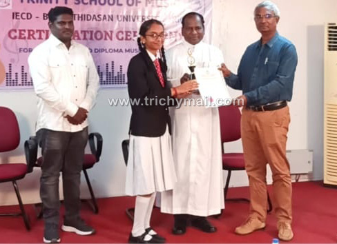 திருச்சி, டிச. 8 திருச்சி பாரதிதாசன் பல்கலைக்கழக சுயதொழில் மேம்பாட்டு நிறுவனத்தின் கீழ், கிதார், வயலின், கீபோர்டு, டிரம்ஸ் போன்ற இசைக்கருவிகள் வாசிப்புக்கான படிப்புகளை முடித்து, தேர்ச்சியடைந்தவர்களுக்கான பட்டமளிப்பு விழா, பல்கலைக் கழகத்தின் காஜாமலை வளாக IECD அரங்கில், சனிக்கிழமை மாலை நிகழ்ந்தது.