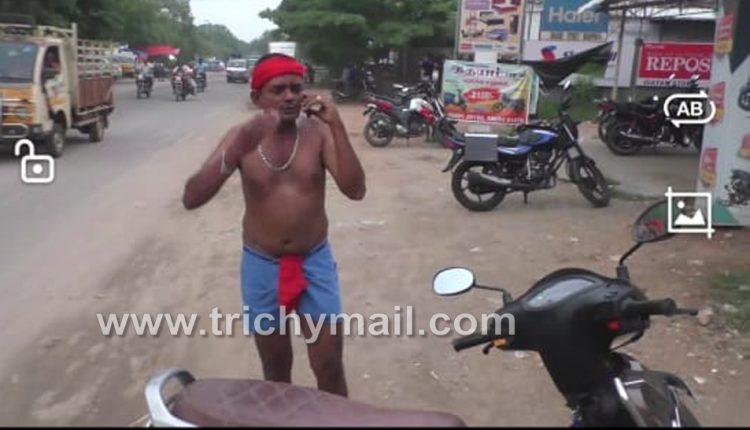 திருச்சி, அக். 18 திருச்சி மாவட்டம், மணப்பாறையைச் சேர்ந்தவர் சங்கர். இவர் சம்சா வியாபாரம் செய்து வருகிறார். இவர் இருசக்கர வாகனம் ஒன்று வாங்கி அதற்கான கடன் தொகை செலுத்தி விட்டதாக கூறப்படுகிறது. பின்னர் மீண்டும் அவரிடம் கடன் வேண்டுமா என்று தனியார் நிறுவனத்தின் சார்பில் தொடர்ந்து அலைபேசி மூலம் தொடர்ந்து கொண்டு பேசி வந்துள்ளனர். இதனால் ஆத்திரமடைந்த சம்சா சங்கர் சம்மந்தப்பட்ட நிறுவனம் முன்பு தன்னிடம் கோவணமும், துண்டும் தான் உள்ளது? என்னை ஏன் மீண்டும் மீண்டும் அழைத்து கடன் வேண்டுமா என்று தொந்தரவு செய்கிறீர்கள் என்று கூறி சாலையில் இருசக்கர வாகனத்துடன் அரை நிர்வாணத்தில் போராட்டத்தில் ஈடுபட்டார். பின்னர் சம்பவம் பற்றி தகவல் அறிந்த போலீசார் அவரை சமாதானம் செய்து வைத்து அனுப்பி வைத்தனர்.