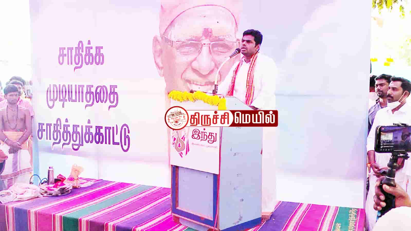 இந்து முன்னணி கட்சி நிறுவிய வீரத்துறவி.ராம கோபாலன் முதலாம் ஆண்டு நினைவு தினத்தை முன்னிட்டு திருச்சி சீராத்தோப்பில் அமைந்துள்ள நினைவிடத்தில் பாரதிய ஜனதா கட்சியின் மாநில தலைவர் அண்ணாமலை மாலை அணிவித்து மரியாதை செலுத்தினார். பின்னர் அவர் பேசுகையில், சுதந்திர போராட்ட காலகட்டத்தில் பிறந்து பல்வேறு நல்ல விஷயங்களை சந்தித்தவர் ராம கோபாலன் திராவிட கழகத்தை பார்த்தவர். கடந்த 1980ல் மீனாட்சிபுரம் பிரச்சினையின் போது மதம் மாறுவதற்கு என்ன காரணம் என்பதை ஆராய்ந்தவர்.