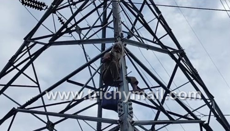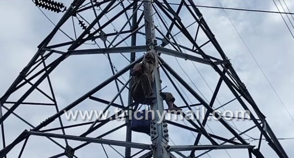 உயர் மின்னழுத்த கோபுரம் மீது ஏறி சுயேட்சை வேட்பாளர் போராட்டம்