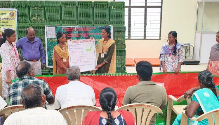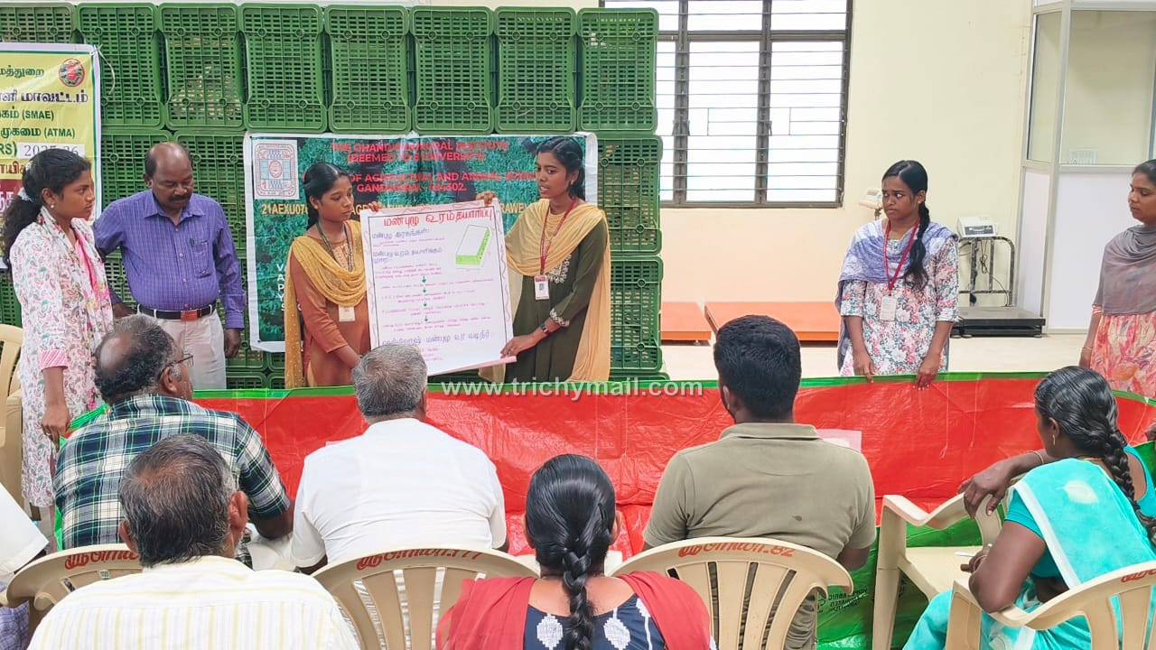 திருச்சி மாவட்டம்  தொட்டியம் அருகே பிடாரமங்கலம் கிராமத்தில் வேளாண்மை மற்றும் கால்நடை அறிவியல் கல்லூரியின் இறுதியாண்டு மாணவிகள் விரிவாக்க சீரமைப்பு திட்டத்தின் கீழ் விவசாயிகளுக்கான வேளாண் ஒருங்கிணைந்த பண்ணையம் பயிற்சி முகாம் நடத்தினர்.
