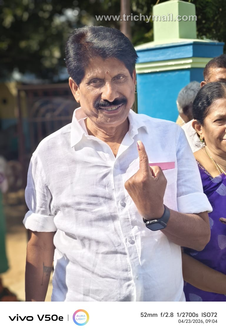 திருச்சி, ஏப். 23 திருச்சி மாவட்டம், லால்குடியில் போட்டியிடும் த.வெ.க வேட்பாளர் கு.ப.கிருஷ்ணன் வாக்களித்தார்.