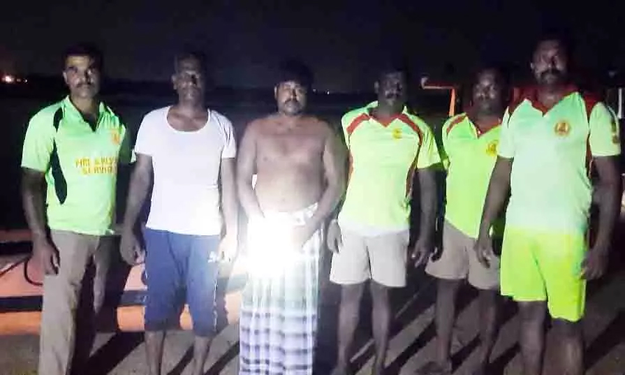 கொள்ளிடம் ஆற்றில் சிக்கிய லாரி ஓட்டுநர் மீட்பு
