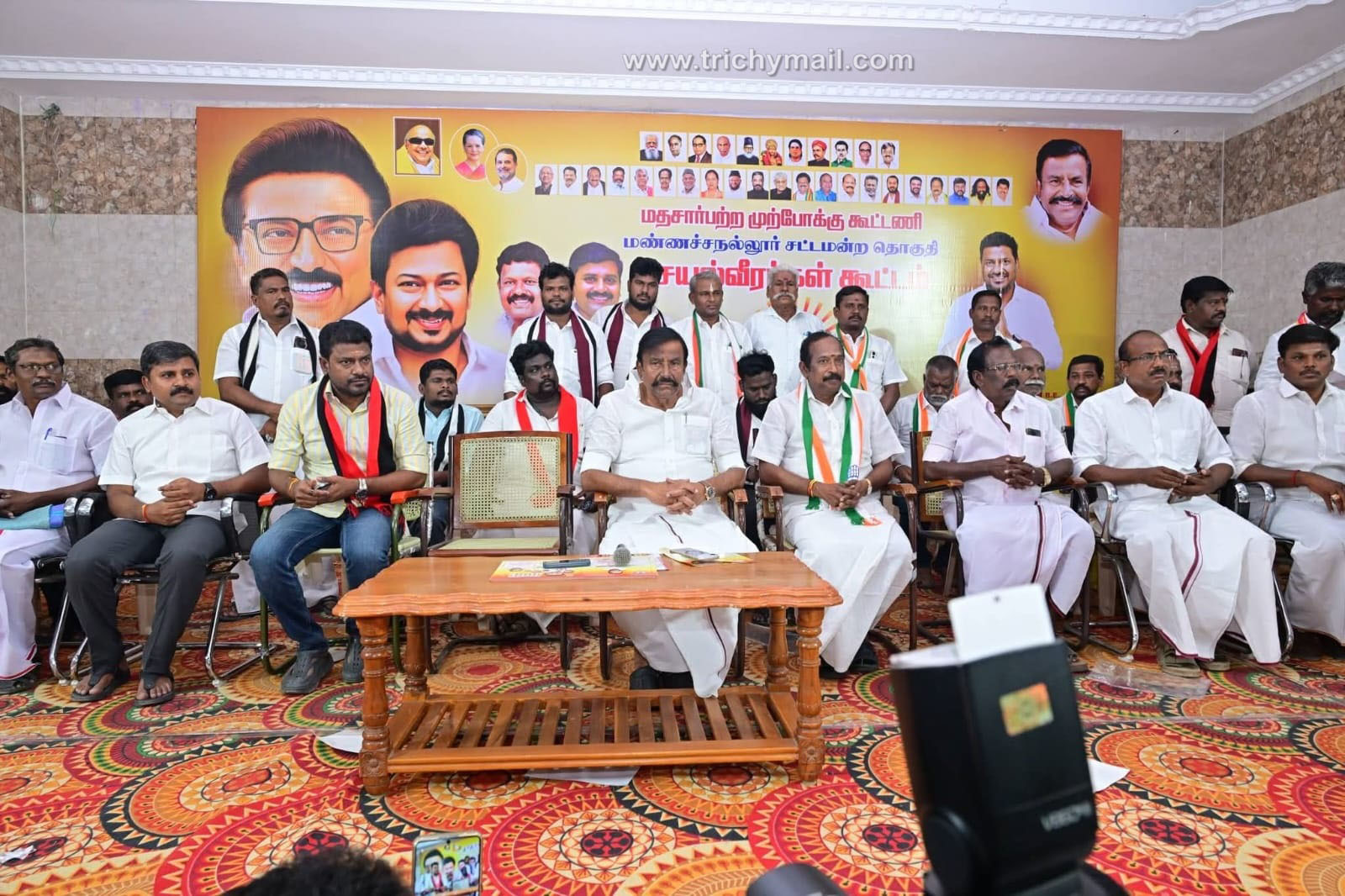 திருச்சி, ஏப்.3 திருச்சி வடக்கு மாவட்டம் மண்ணச்சநல்லூர் சட்டமன்ற தொகுதி மதச்சார்பற்ற முற்போக்கு கூட்டணி மற்றும் திராவிட முன்னேற்ற கழக செயல்வீரர்கள் கூட்டத்தில் கழக முதன்மைச் செயலாளர் கே.என்.நேரு முன்னிலையில் வாணியர் திருமண மஹாலில் நேற்று நடைபெற்றது.