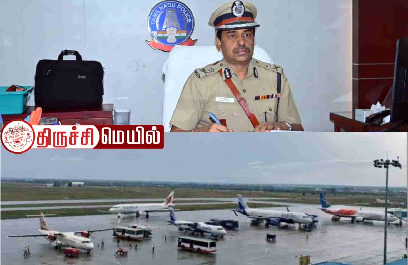 திருச்சி மாநகர காவல் ஆணையரும், விமான நிலைய ஆணைய குழு தலைவருமான கார்த்திகேயன் திருச்சி பன்னாட்டு விமான நிலையத்தில் பாதுகாப்பு தொடர்பாக இன்று ஆய்வு மேற்கொண்டார்.