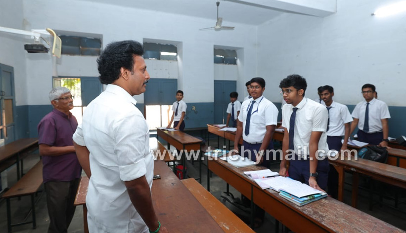 திருச்சி கேம்பியன் பள்ளியில் அமைச்சர் அன்பில் மகேஸ் திடீர் ஆய்வு