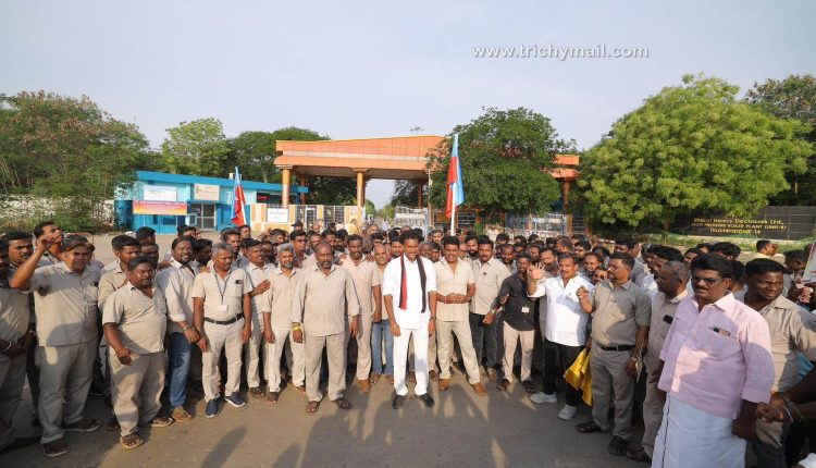 பெல் தொழிற்சாலை தொழிலாளர்களிடம் அமைச்சர் அன்பில் மகேஸ் வாக்கு சேகரிப்பு