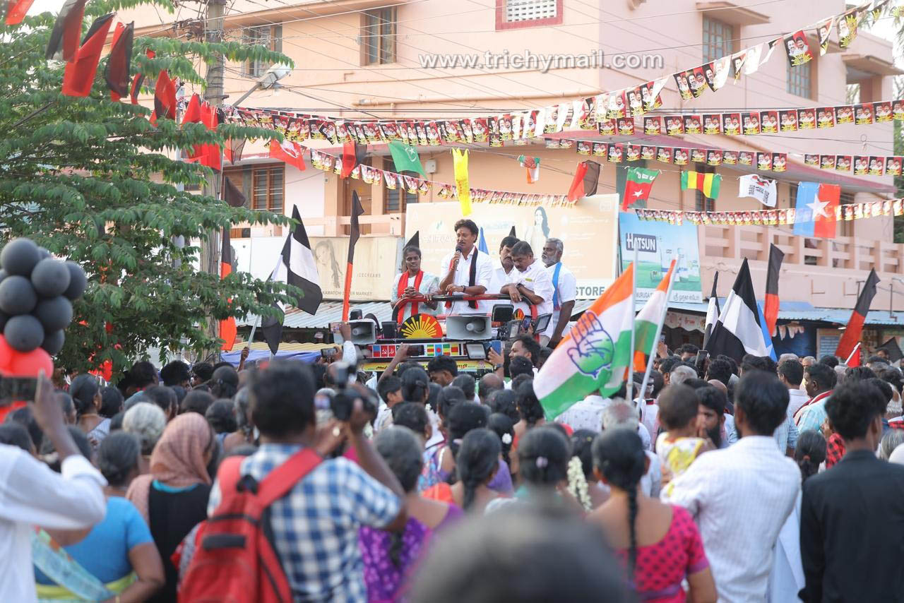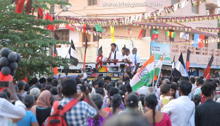 திருவெறும்பூர் தொகுதி கிருஷ்ணசமுத்திரம் ஊராட்சியில் அமைச்சர் அன்பில் மகேஸ் வாக்கு சேகரிப்பு