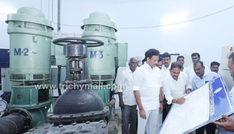 கம்பரசம் பேட்டை நீர்உந்து நிலையத்தில் அமைச்சர் அன்பில் மகேஸ் ஆய்வு