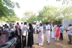 திருச்சி, ஏப். 23 செந்தண்ணீர்புரம் பகுதியில் அமைச்சர் அன்பில் மகேஸ் வரிசையில் நின்று வாக்களித்தார்.