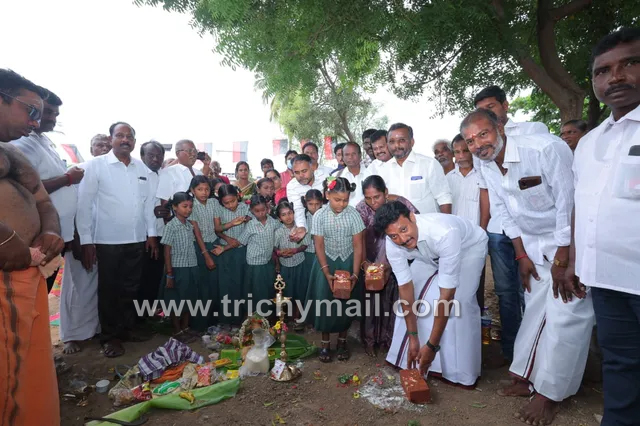 அதற்கான கட்டுமான பணிகளை துவங்கி வைப்பதற்காக இன்று பூமி பூஜை நடைபெற்றது. இந்த பூமி பூஜையில் பள்ளிக்கல்வித்துறை அமைச்சர் அன்பில் மகேஷ் பொய்யாமொழி கலந்துகொண்டு மாணவ மாணவிகளுடன் அடிக்கல் நாட்டி கட்டுமான பணிகளை துவக்கி வைத்தார்.