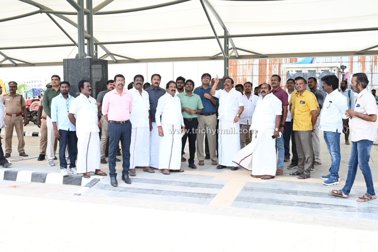 இந்தநிலையில் இன்று பஞ்சப்பூர் பேருந்து நிலையம் மற்றும் அரசு விழா நடைபெறும் இடத்தையும் நகராட்சி நிருவாகத்துறை அமைச்சர் கே.என்.நேரு நேரில் பார்வையிட்டு ஆய்வு செய்தார்.