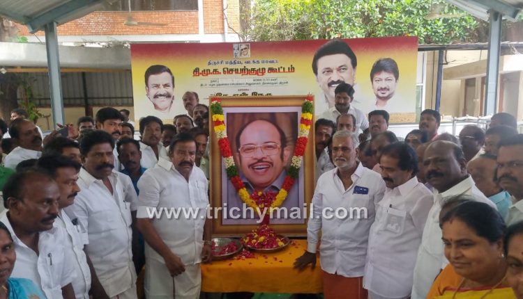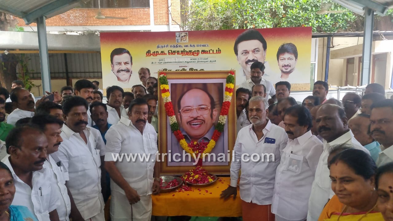 திருச்சி, நவ. 23 திருச்சியில் மறைந்த முன்னாள் மத்திய அமைச்சர் முரசொலி மாறனின் 20-ம் ஆண்டு நினைவு நாளை முன்னிட்டு திருச்சி தில்லை நகரில் உள்ள கழக முதன்மைச் செயலாளர் கே.என்.நேரு அலுவலகத்தில் முரசொலி மாறனின் திருவுருவப் படத்திற்கு கழக முதன்மைச் செயலாளரும் நகராட்சி நிர்வாக துறை அமைச்சருமான கே.என் நேரு மற்றும் இந்து சமய அறநிலையத்துறை அமைச்சர் சேகர்பாபு ஆகியோர் தலைமையில் திமுகவினர் மாலை அணிவித்து மரியாதை செலுத்தினர்.