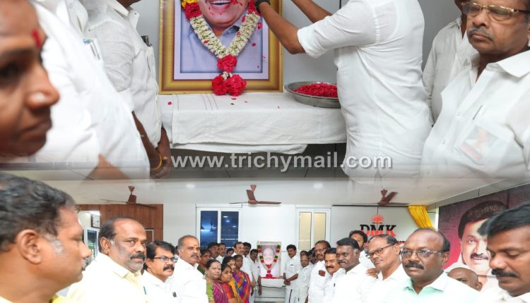 முரசொலி மாறன் நினைவு நாள் திருவுருவப்படத்திற்கு அமைச்சர்  அன்பில் மகேஸ்மாலை அணிவித்து மரியாதை