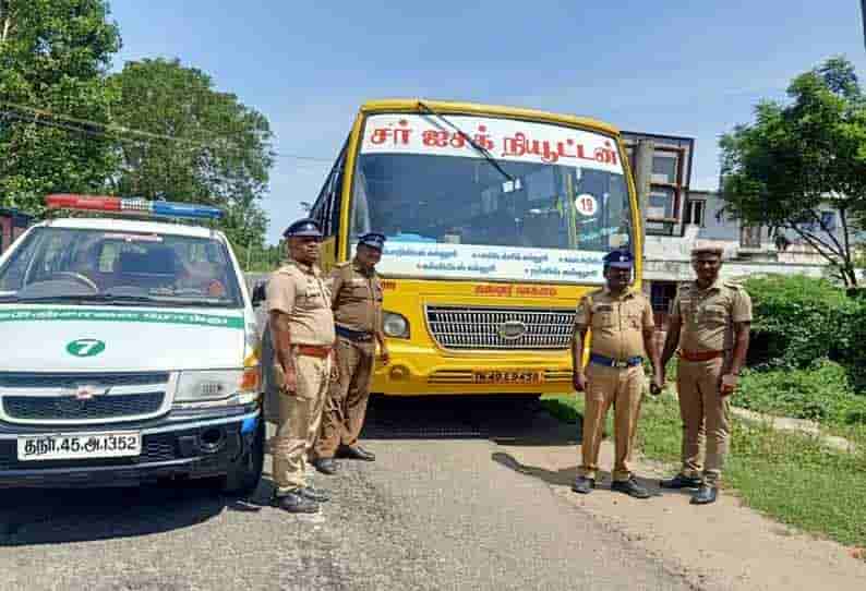 திருவாரூரிலிருந்து கல்லூரி பேருந்தை கடத்தி வந்த மர்ம ஆசாமி – திருச்சியில் பேருந்து மீட்பு