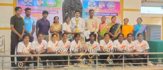 திருச்சி, ஜன.12 திருச்சி பாரதிதாசன் பல்கலைக்கழக பெண்கள் பூப்பந்தாட்டப் போட்டி ஜன. 10, 11 ஆம் தேதிகளில் மன்னார்குடி எஸ்.டி.இ.டி பெண்கள் கல்லூரியில் நடைபெற்றது. இதில் பாரதிதாசன் பல்கலைக்கழக இணைவு பெற்ற 9 மாவட்டங்களிலிருந்து சுமார் 17 கல்லூரி பெண்கள் அணியினர் பங்கேற்றனர். இப்போட்டியில் திருச்சி தேசிய கல்லூரி பெண்கள் அணியினர் முதல் இடத்யும்,திருச்சி பாரதிதாசன் பல்கலைக்கழக உடற்கல்வித்துறை பெண்கள் அணியினர் 2ஆம் இடமும் பெற்றன. இதைத் தொடர்ந்து நடைபெற்ற பரிசளிப்பு விழாவில் பல்கலைக்கழக உடற்கல்வித்துறை தலைவர் மற்றும் விளையாட்டுக்குழு செயலாளர் காளிதாசன் மற்றும் போட்டி ஒருங்கிணைப்பாளர் சித்ரா ஆகியோர் போட்டிகளில் வெற்றி பெற்றோருக்கு பரிசுகள், சான்றுகள், பதக்கங்களை வழங்கினர்.
