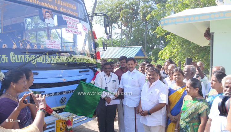 திருச்சி, ஆக.19  மகளிர் விடியல் பயணப் பேருந்து சேவை: தமிழக பள்ளிக்கல்வித்துறை அமைச்சர் அன்பில் மகேஸ் பொய்யாமொழிகொடியசைத்து துவக்கி வைத்தார் .