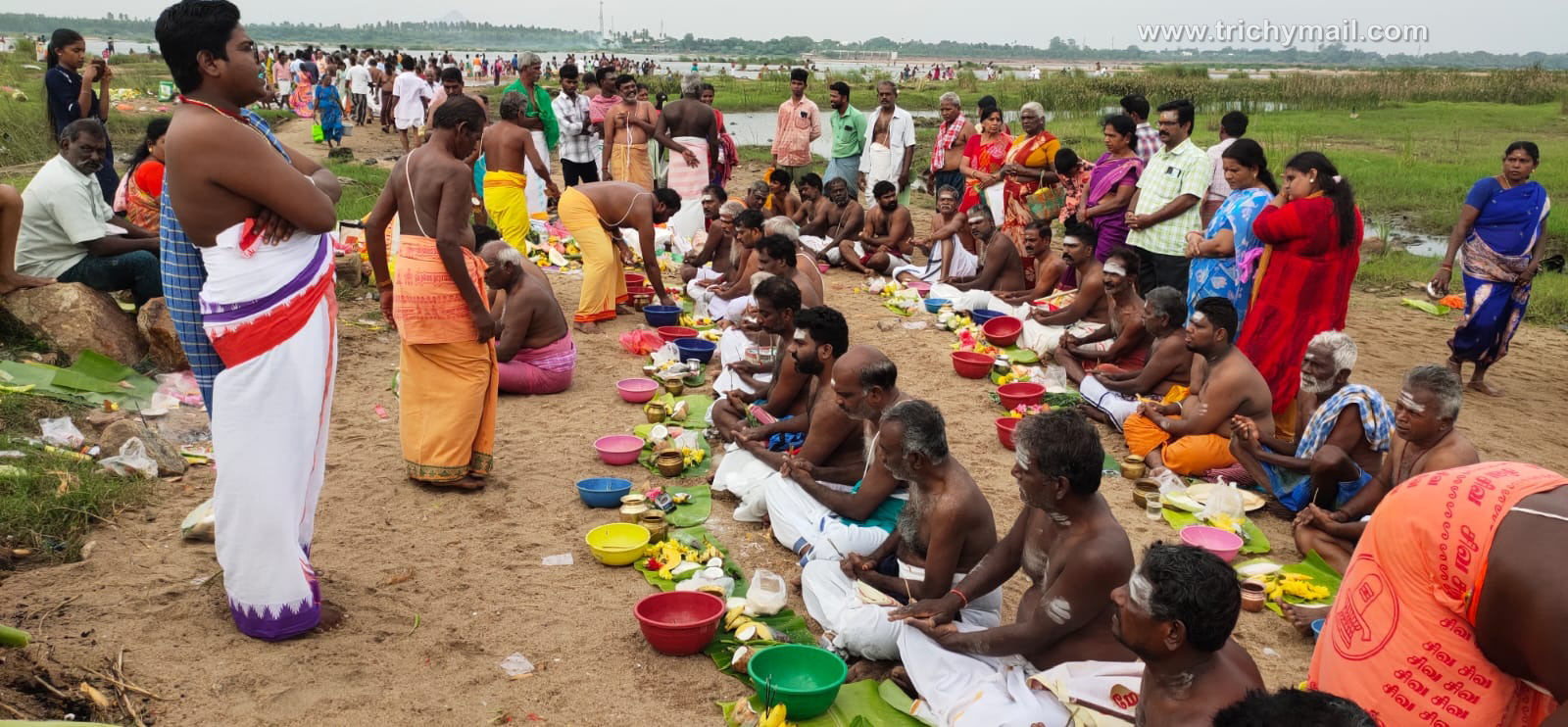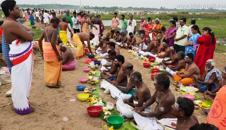 திருச்சியில் மஹாளய அமாவாசையை முன்னிட்டு முன்னோர்களுக்கு தர்பணம் செய்து வழிபாடு
