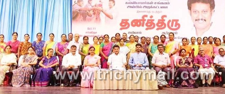 திருச்சி, ஆக.14 திருச்சி மாவட்டம், காட்டூர் மான்போர்ட் பள்ளியில் சர்வதேச குழந்தைகள் தினத்தையொட்டி முன்னிட்டு ரோட்டரி மாவட்டம் 3000, கல்வியாளர்கள் சங்கமம், அன்பில் அறக்கட்டளை இணைந்து நடத்திய தனித்திரு, அறிவால், ஆற்றலால் நிகழ்ச்சியில் பள்ளிக்கல்வித்துறை அமைச்சர் அன்பில் மகேஸ் பொய்யாமொழி கலந்து கொண்டு பரிசுகள் வழங்கி உரையாற்றினார். இவ்விழாவில் பங்கேற்ற அனைத்து பள்ளிகளின் ஆசிரியர்கள் உள்ளனர்.