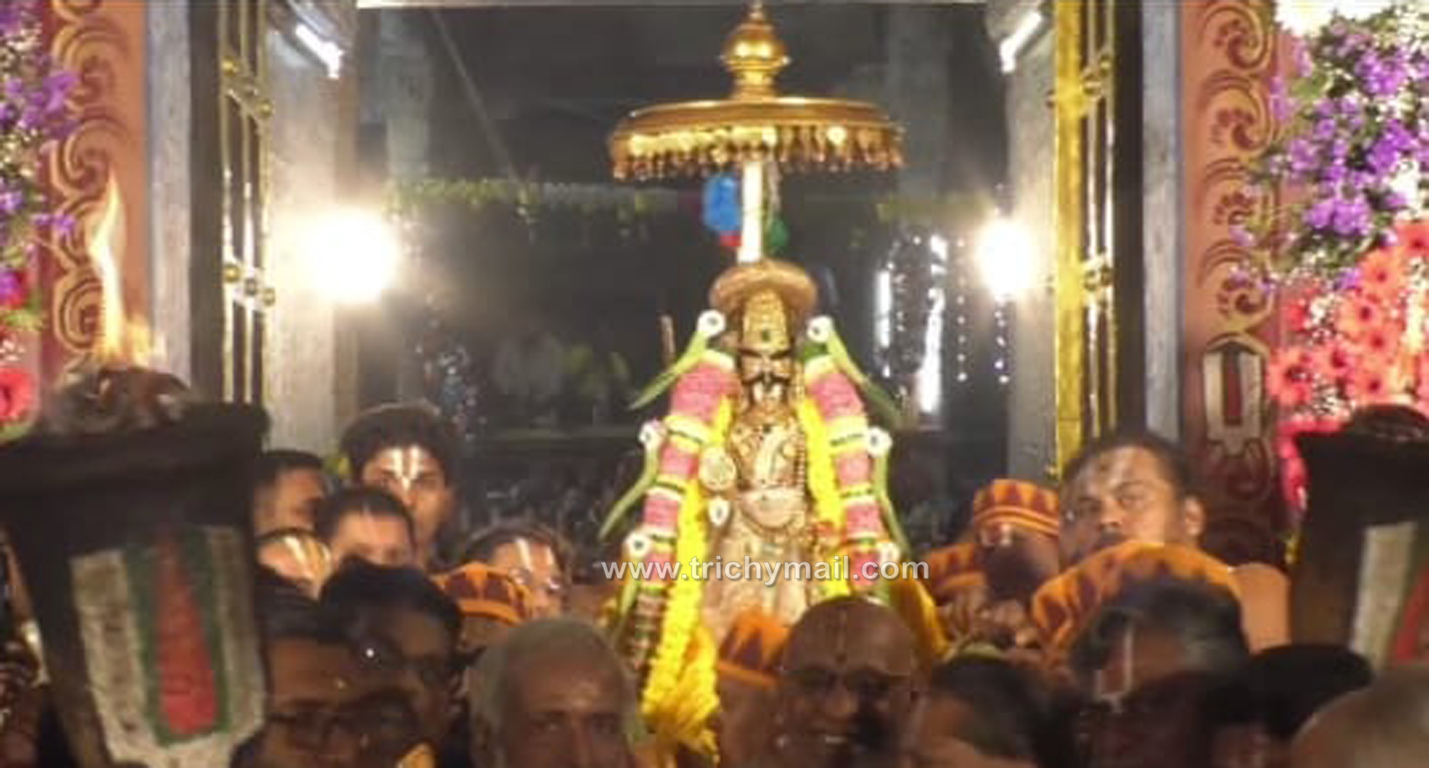 இதில் நம்பெருமாள் ரத்தின அங்கி, பாண்டியன் கொண்டை, கிளிமாலை உள்பட பல்வேறு சிறப்பு ஆபரணங்கள் அணிந்து பக்தர்களுக்கு காட்சி அளித்தார்.