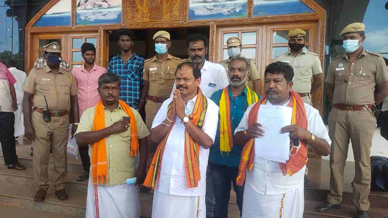திருச்சி மாவட்டம் சிறுகனூரில் பெரியாருக்கு தமிழக அரசு சார்பில் 100 கோடி மதிப்பில் 95 அடி சிலையை அமைக்கும் முயற்ச்சியை கைவிடக் கோரியும், எதிர்ப்பு தெரிவித்து இந்து மக்கள் கட்சி தலைவர் அர்ஜூன் சம்பத் திருச்சி மாவட்ட ஆட்சியர் அலுவலகத்தில் மனு அளித்தார்.