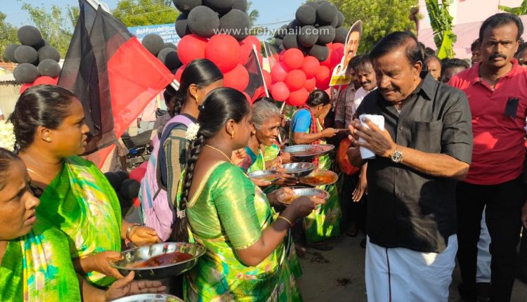 ஒன்றிய அரசின் தொகுதி மறு சீரமைப்பு மசோதாவுக்கு எதிர்ப்பு : கே.என்.நேரு கருப்பு சட்டை அணிந்து வாக்கு சேகரிப்பு