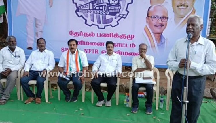 தென்னக ரயில்வே தொழிலாளர் சங்கத்தின் வாயிற் கூட்டம் திருச்சி பொன்மலை ஆர்மெரி கேட் முன்பாக இன்று நடைபெற்றது