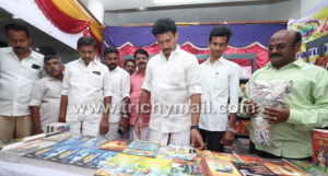 மணப்பாறை அருகே தமிழகத்தில் முதன் முறையாக ஊராட்சி அளவில் புத்தக கண்காட்சியை துவக்கி வைத்த அமைச்சர் அன்பில். மகேஸ் பொய்யாமொழி.