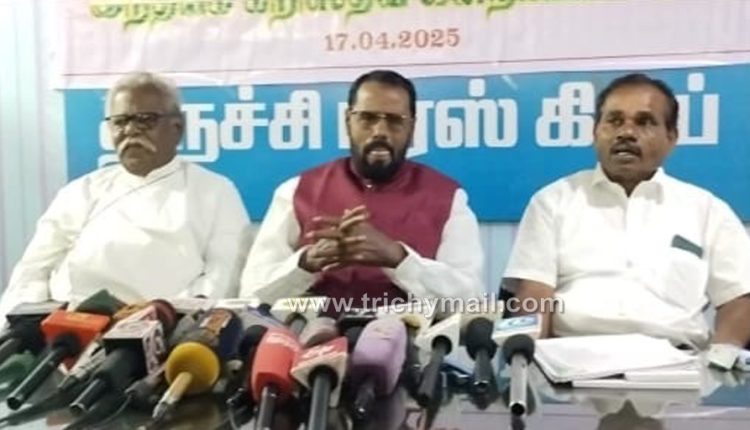 திருச்சி ஏப். 18 அரசியல் காரணமாக எங்களது கூட்டத்திற்கு அனுமதி ரத்து செய்துள்ளனர் – திருச்சியில் இந்திய கிறிஸ்தவ ஜனநாயக கட்சி நிறுவனர் பேட்டி