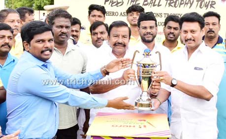 திருச்சி,ஜூலை 26 திருச்சி மாவட்டத்திற்கு வருகை தந்த ஆசிய ஹாக்கி கோப்பை வரவேற்பு நிகழ்ச்சியான “பாஸ் தி பால்” நிகழ்வில் நகராட்சி நிருவாகத்துறை அமைச்சர் கே.என்.நேரு, பள்ளிக்கல்வித்துறை அமைச்சர் அன்பில்மகேஸ் பொய்யாமொழி ஆகியோர் கலந்து கொண்டு கோப்பையை வரவேற்று பொதுமக்கள் பார்வைக்கு காட்சிப்படுத்தினர். உடன் மாவட்ட ஆட்சியர் பிரதீப்குமார், சட்டமன்ற உறுப்பினர்கள் ஸ்டாலின்குமார், அப்துல்சமது, மண்டல தலைவர்கள், மாமன்ற உறுப்பினர்கள், அரசுத்துறை அலுவலர்கள் உள்ளனர்.