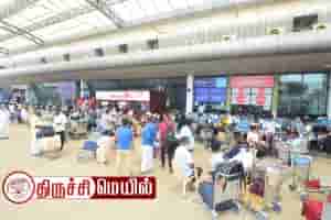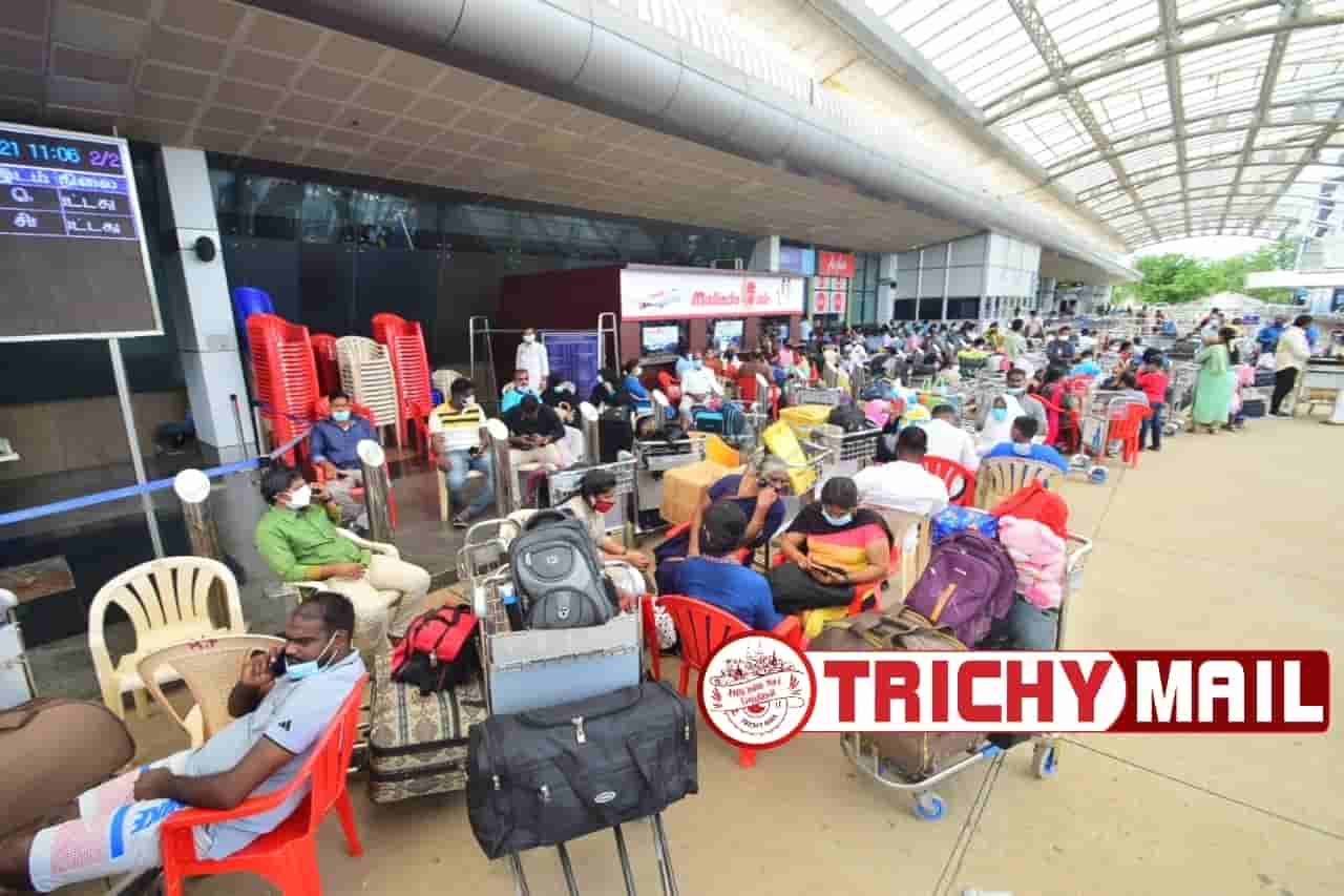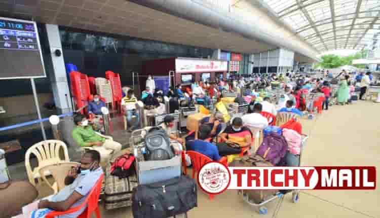 திருச்சி சர்வதேச விமான நிலையத்தில் வெளிநாடுகளுக்கு செல்லும் பயணிகளுக்கு 2 மணி நேரத்திற்கு முன்னதாக கொரோனா பரிசோதனை செய்யப்பட்டு வருகிறது.