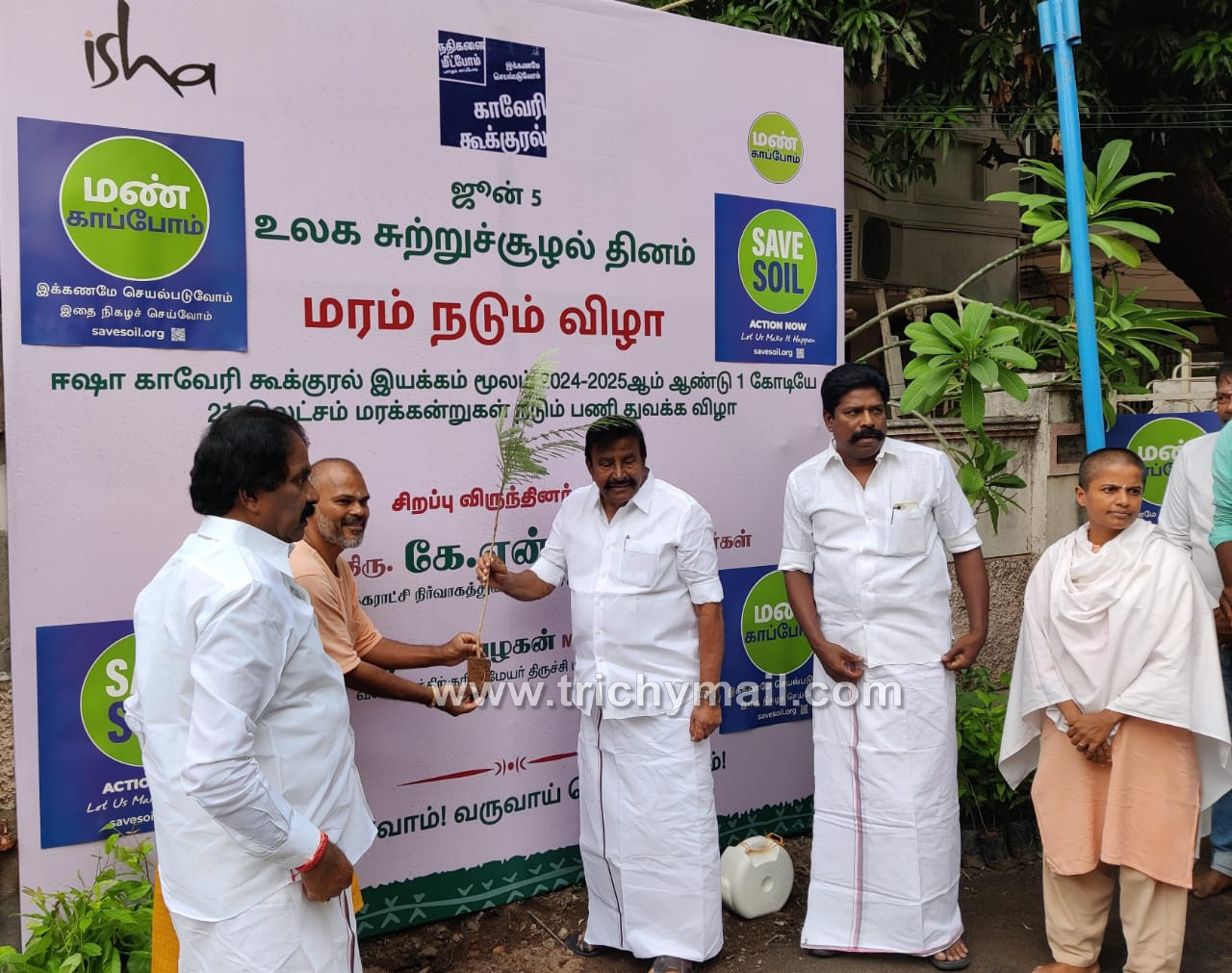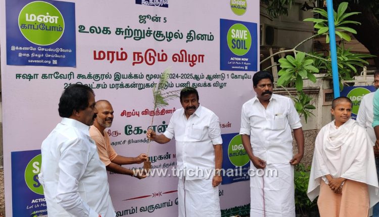 முன்னதாக, ஈஷா மண் காப்போம் இயக்கத்தின் ஒருங்கிணைப்பாளர் சுவாமி ஸ்ரீமுகா பேசுகையில், காவேரி கூக்குரல் இயக்கம் சார்பில் நடப்பு நிதியாண்டில் (2024-25) தமிழ்நாடு முழுவதும் ஒரு கோடியே 21 லட்சம் மரங்களை விவசாய நிலங்களில் நடும் பணியை தற்போது தொடங்கி உள்ளோம். திருச்சி மாவட்டத்தில் மட்டும் இந்தாண்டு 4.5 லட்சம் மரக்கன்றுகளை நட திட்டமிட்டுள்ளோம். கடந்தாண்டு திருச்சியில் 2,92,773 மரக்கன்றுகளை விவசாயிகள் நட்டுள்ளனர் என்றார்.