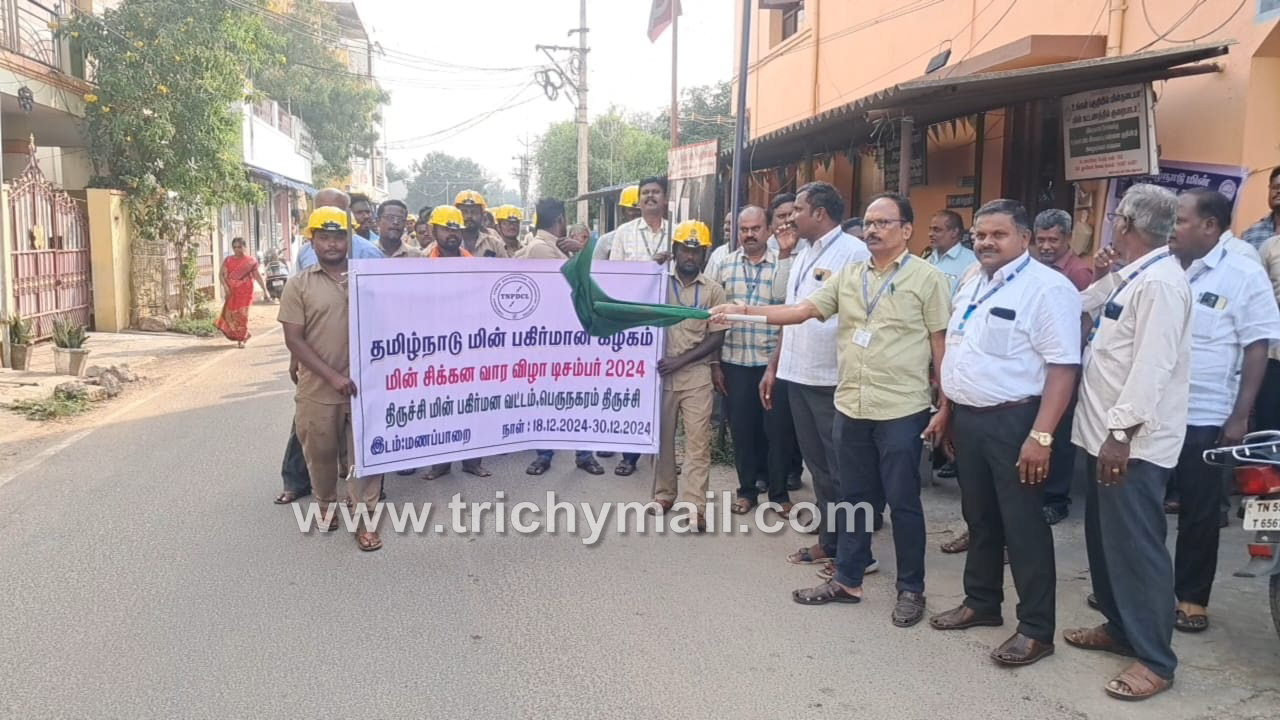 இதனையடுத்து இன்று மாலை திருச்சி மாவட்டம், மணப்பாறையில் மின் சிக்கன வார விழாவை முன்னிட்டு மின் வாரிய அதிகாரிகள் மற்றும் ஊழியர்கள் சார்பில் விழிப்புணர்வு பேரணி நடைபெற்றது. மின் வாரிய செயற்பொறியாளர் அலுவலகத்தில் இருந்து புறப்பட்ட பேரணியை செயற்பொறியாளர் தியாகராஜன் கொடியசைத்து துவக்கிவைத்தார்.