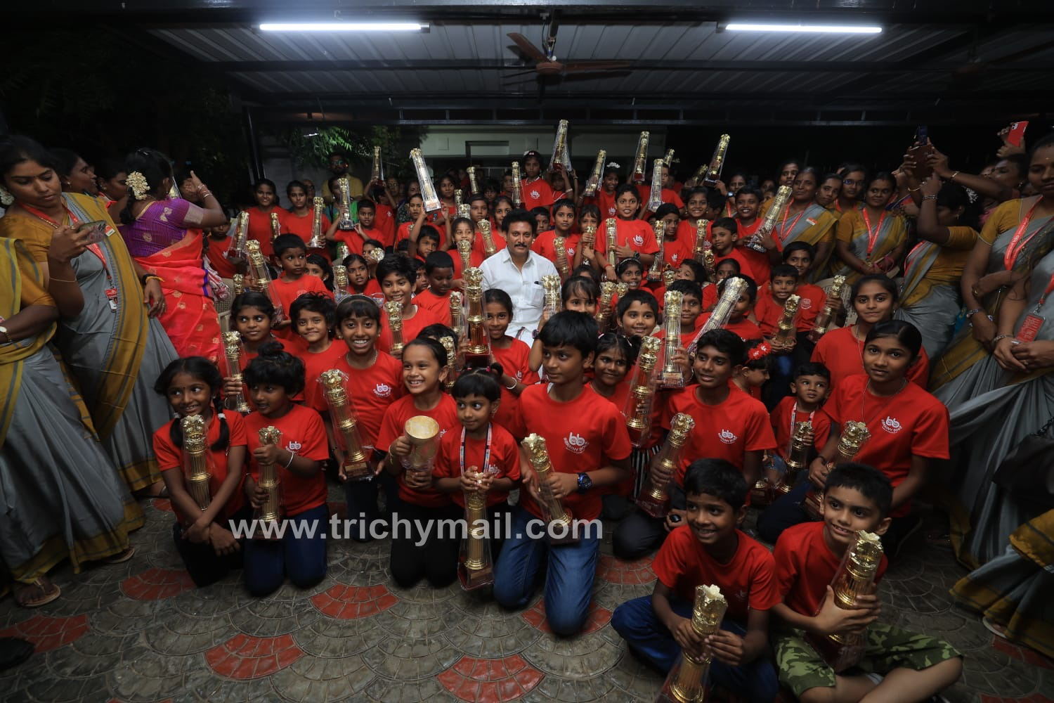 ஒலிம்பியாட் போட்டியில் வெற்றி பெற்ற மாணவர்களுக்கு அமைச்சர் அன்பில் மகேஸ் பரிசு கோப்பைகள் வழங்கல்