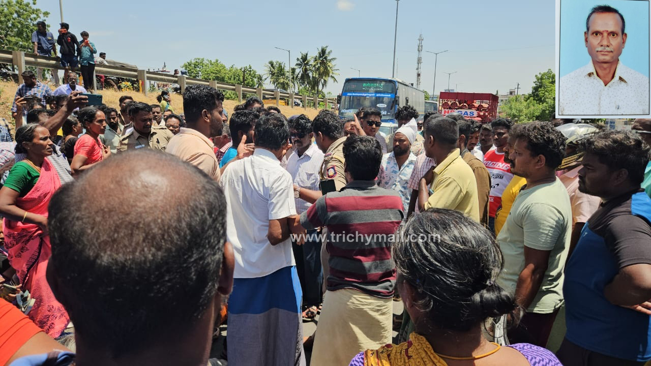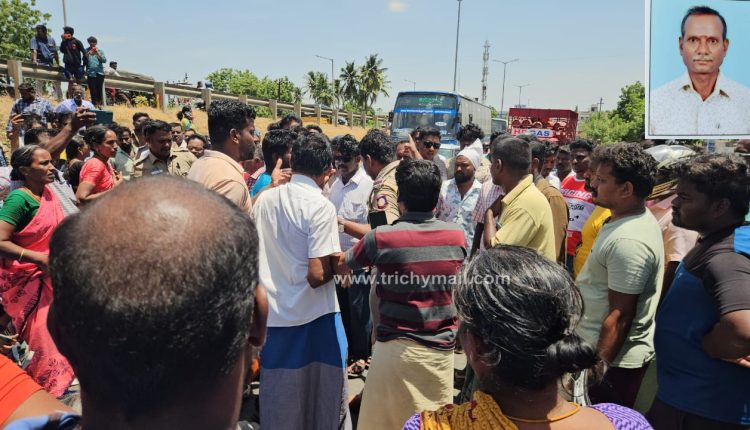 திருச்சி, ஜூலை 5 தொடக்க வேளாண்மை கூட்டுறவு கடன் சங்கத்தின் முதுநிலை எழுத்தர் சாமிநாதனின் தற்கொலைக்கு நீதி கேட்டு குடும்பத்தினர் உறவினர்கள் போராட்டம் .