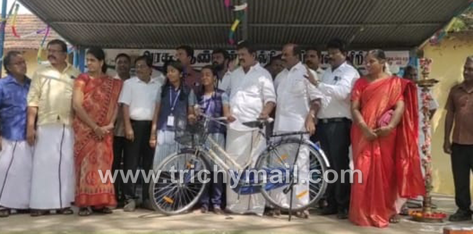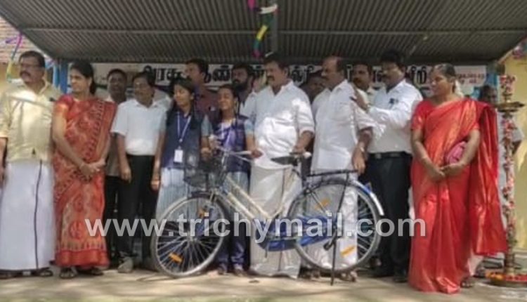 திருச்சி, டிச. 9  முசிறி அரசு ஆண்கள் மேல்நிலைப்பள்ளி வளாகத்தில் பள்ளி மாணவ மாணவிகளுக்கு இலவச மிதிவண்டிகள் வழங்கும் விழா நடைபெற்றது.