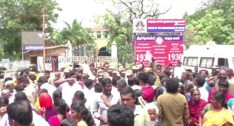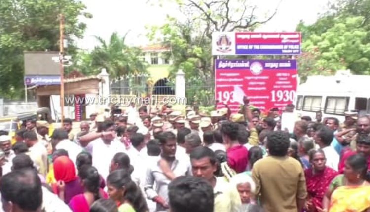 திருச்சி மாநகர துணை ஆணையர் ஈஸ்வரன் உள்ளிட்ட நூற்றுக்கணக்கான போலீசார் அங்கு வருகை தந்த பொதுமக்களை அப்புறப்படுத்த முயன்றனர் இதற்கு மறுப்பு தெரிவித்து அனைவரும் புகார் கொடுக்க வந்துள்ளோம் என கூறியதால் வாக்குவாதம் ஏற்பட்டது போலீசருக்கும் பொது மக்களுக்கும் இடையே கடும் வாக்குவாதம் ஏற்பட்டது.