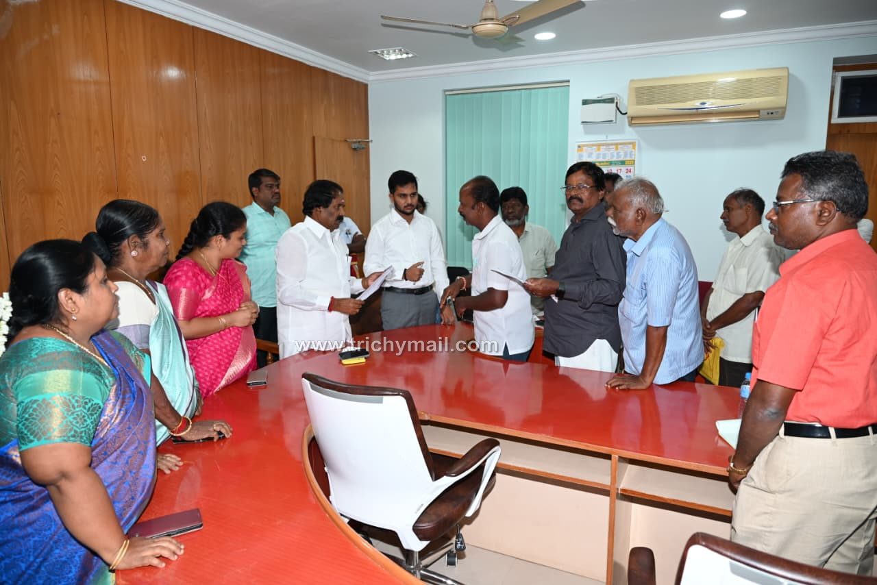 திருச்சி, ஆக.18 திருச்சி மாநகராட்சி மேயர் அன்பழகன் தலைமையில் மாநகராட்சி மேயர் அலுவலக கூட்ட அரங்கில் நடைபெற்ற பொதுமக்கள் குறைதீர்க்கும் கூட்டத்தில் மாநகரின் பல்வேறு பகுதிகளைச் சேர்ந்தவர்கள் கோரிக்கை மனுக்களை மேயரிடம் அளித்தார்கள்.