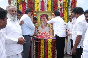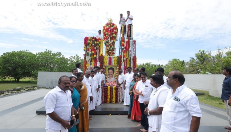 திருச்சி, செப். 2 ராமஜெயம் பிறந்த நாளையொட்டி திருவுருவச் சிலைக்கு அமைச்சர் அன்பில் மகேஸ் மாலை அணிவித்து மரியாதை