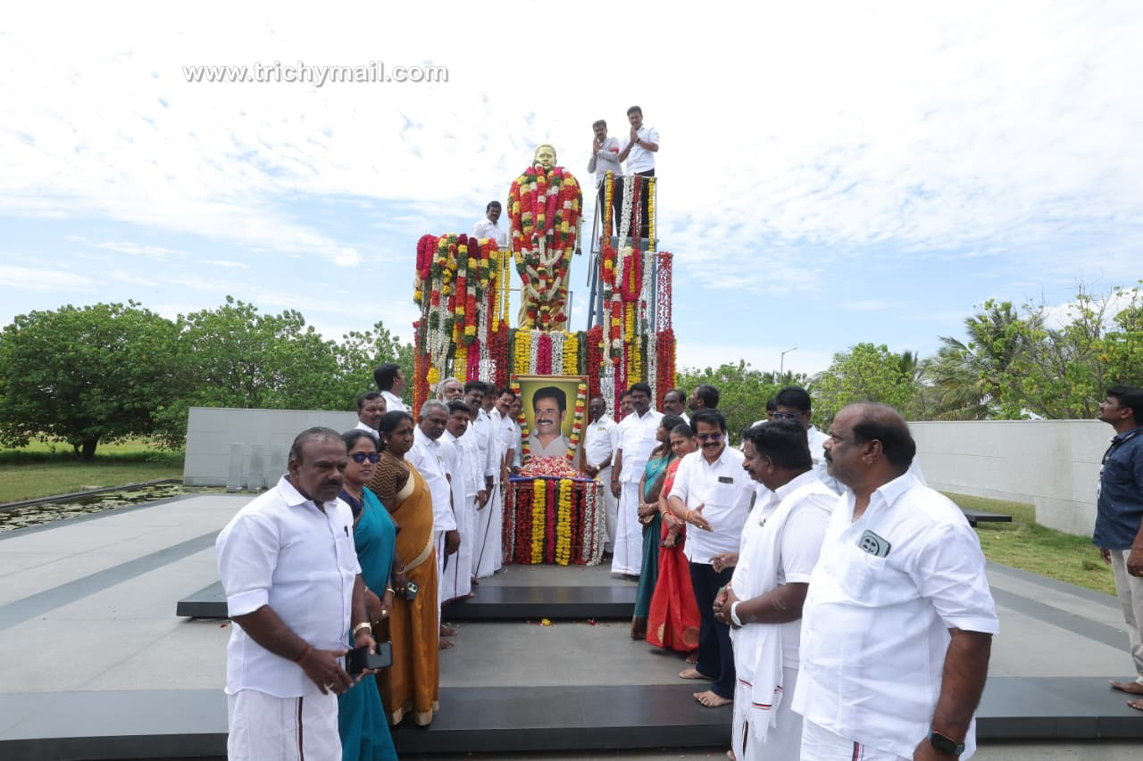 தி.மு.க. முதன்மைச் செயலாளரின் தம்பி ராமஜெயம் பிறந்தநாளை முன்னிட்டு திருச்சி கேர் கல்லூரியில் அமைந்துள்ள ராமஜெயம் திருவுருவ சிலைக்கு திருச்சி தெற்கு மாவட்ட செயலாளர் தமிழ்நாடு பள்ளிக் கல்வித்துறை அமைச்சர் அன்பில் மகேஸ் பொய்யாமொழி மாலை அணிவித்து மரியாதை செலுத்தினார்.