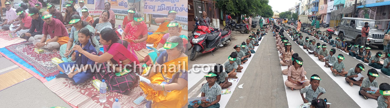 திருச்சி மாவட்ட முதன்மை கல்வி அலுவலர் கிருஷ்ண ப்ரியா  முன்னிலை யில்ஆயிரம் மாணவர்களுடன் அமர்ந்து புத்தகம் வாசிக்கும் அற்புத நிகழ்வு நடைபெற்றது.