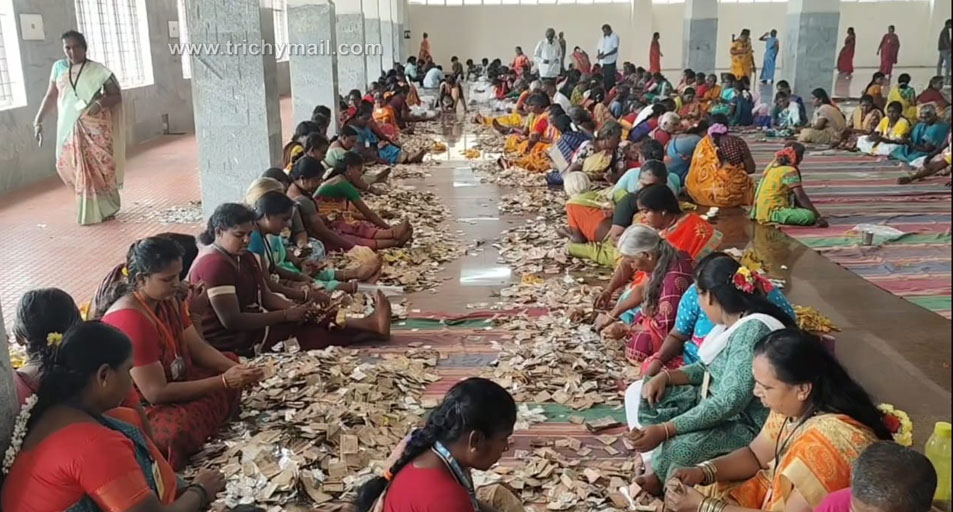 திருச்சி பிப்.12 திருச்சி சமயபுரம் மாரியம்மன் கோவிலில் ரூ 1 கோடியே 24 லட்சம் ரொக்கம், 01 கிலோ 479 கிராம் தங்கம், 02 கிலோ 181 கிராம் வெள்ளி பக்தர்கள் காணிக்கை.