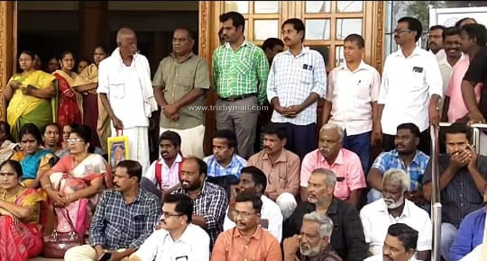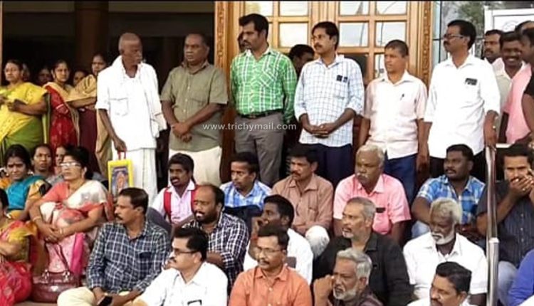 திருச்சி, ஏப்.9 ஊழியர்கள் மீது நடவடிக்கை எடுத்ததை கண்டித்து திருச்சி கலெக்டர் அலுவலகம் முன்பு ஊரக வளர்ச்சித்துறை அனைத்து அலுவலர்கள் போராட்டம் நடைபெற்றது.