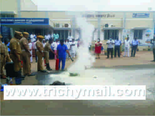மணப்பாறை அரசு மாவட்ட தலைமை மருத்துவமனையில் தீ விபத்து குறித்த பாதுகாப்பு ஒத்திகை