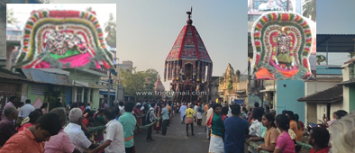 தேரோட்டத்தில் ஆயிரக்கணக்கான பக்தர்கள் கலந்து கொண்டு தேர்களை வடம் பிடித்து இழுத்துச் சென்றனர். மேல வீதி, வடக்கு வீதி, கீழ வீதி, தெற்கு வீதி ஆகிய தேரோடும் வீதிகளில் தேர் வலம் வந்து பக்தர்களுக்கு காட்சி அளித்தார்.